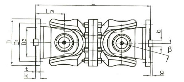 十字萬向聯(lián)軸器有多種結構型式,例如:十字軸式、球籠式、球叉式、凸塊式、球銷式、球鉸式、球鉸柱塞式、三銷式、三叉桿式、三球銷式、鉸桿式等,*常用的為十字軸式,其次為球籠龍,萬向聯(lián)軸器的共同特點是角向補償量較大,不同結構型式萬向聯(lián)軸器兩軸線夾角不相同,一般≤5°-45°之間。萬向聯(lián)軸器利用其機構的特點,使兩軸不在同一軸線,存在軸線夾角的情況下能實現所聯(lián)接的兩軸連續(xù)回轉,并可靠地傳遞轉矩和運動。萬向聯(lián)軸器*大的特點是具有較大的角向補償能力,結構緊湊,傳動效率高。在實際應用中根據所傳遞轉矩大小分為重型、中型、輕型和小型。